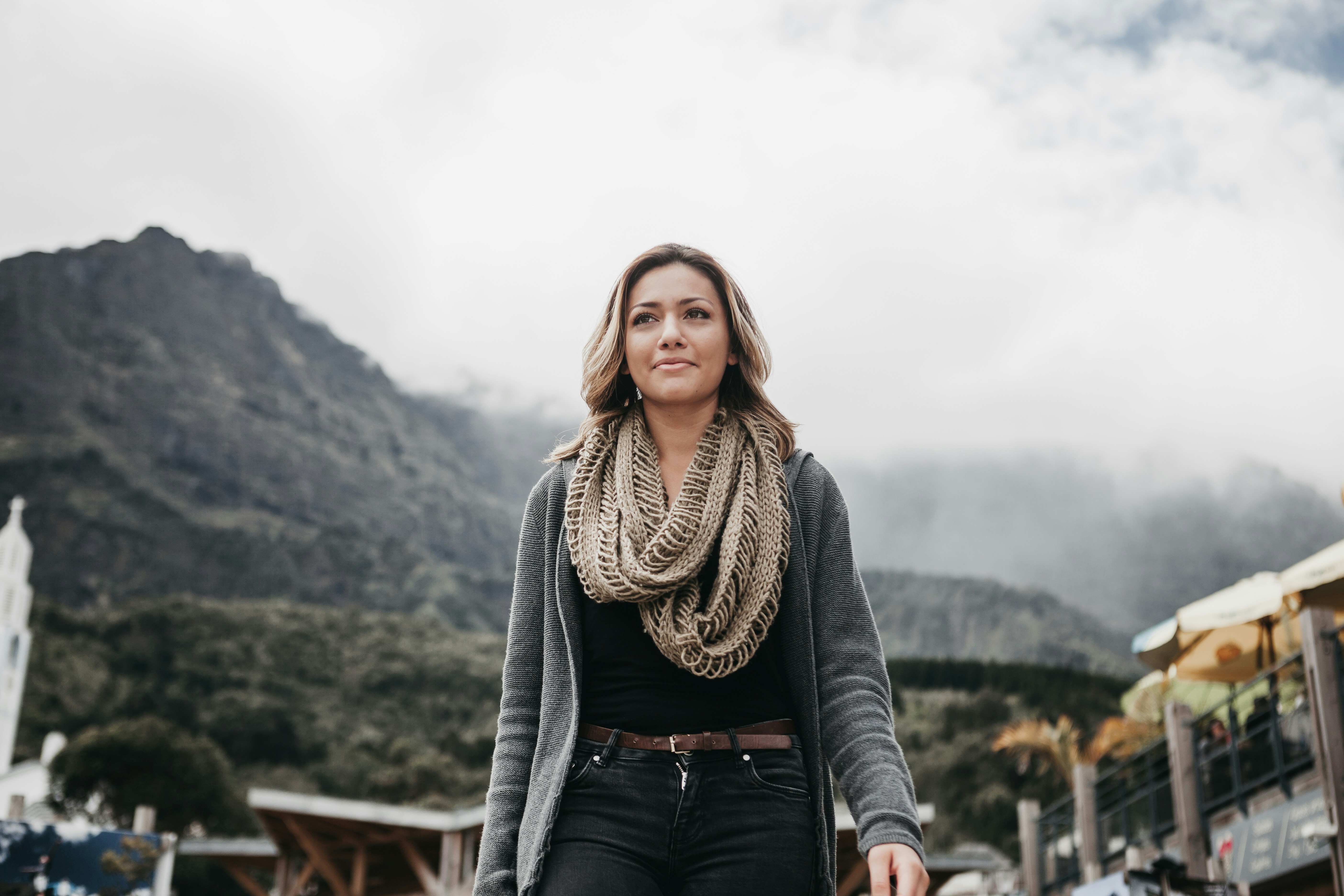 Here you can add a scarf, wear a hat and some chic shades.